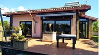 La villa si sviluppa su due livelli. Il piano primo è composto da una luminosa zona giorno composta da un ampio soggiorno con moderna stufa e accesso diretto al giardino attrezzato, una cucina abitabile, spaziosa e ben illuminata, dotata di una grande vetrata che conduce al terrazzo.